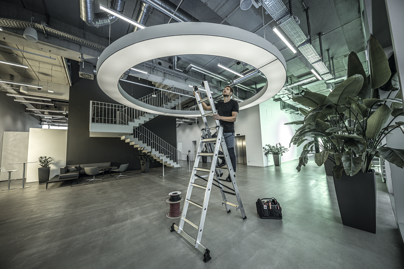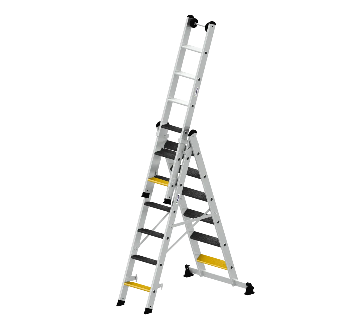 - Einsetzbar als Steh-, Anlege- und Schiebeleiter